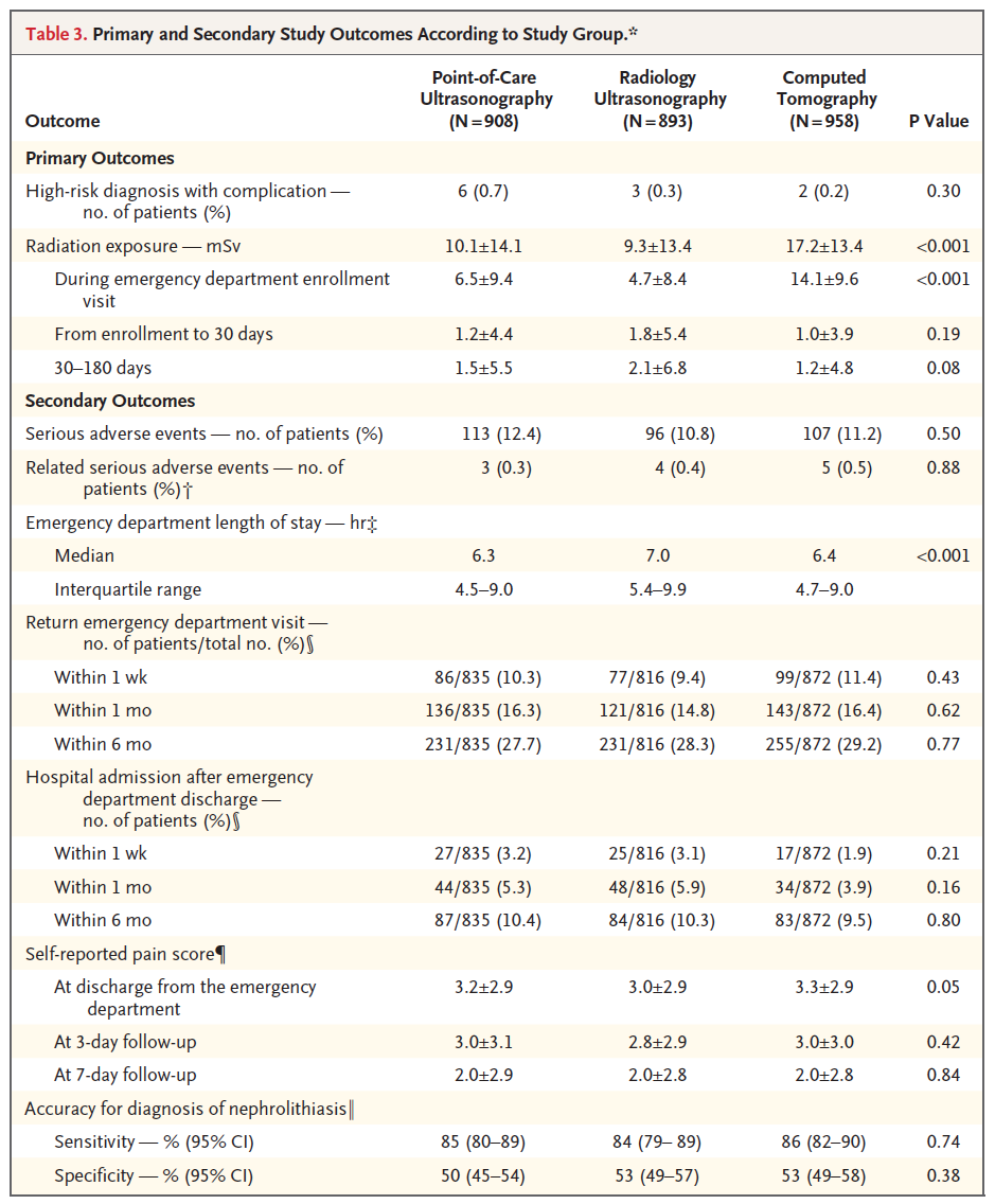 Reference: Smith-Bindman et al.Ultrasonography versus Computed Tomography for Suspected Nephrolithiasis. NEJM 2014