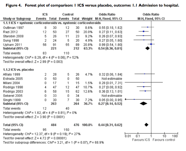 SGEM Comments: This was a well done Cochrane Review on the subject of inhaled corticosteroids for the treatment of acute asthma. I am going to talk a little EBM nerdy here just to reinforce what a good systematic reviewers did.