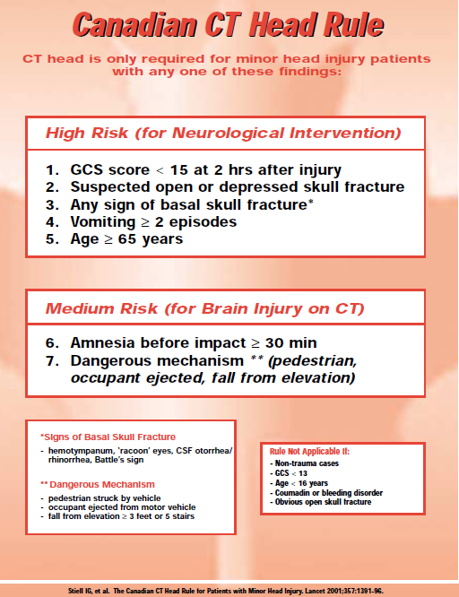 Reference: Stiell et al. The Canadian CT Head Rule for patients with minor head injury. Lancet. 2001