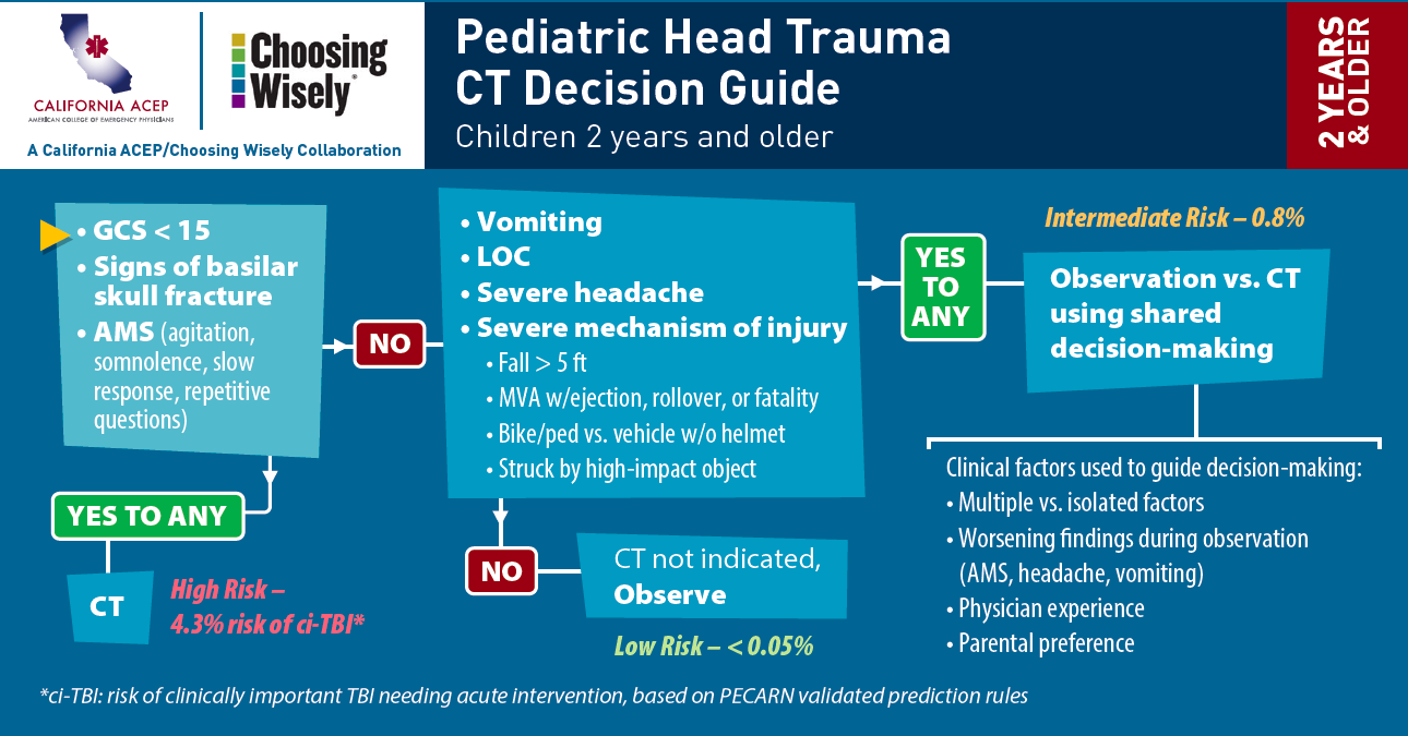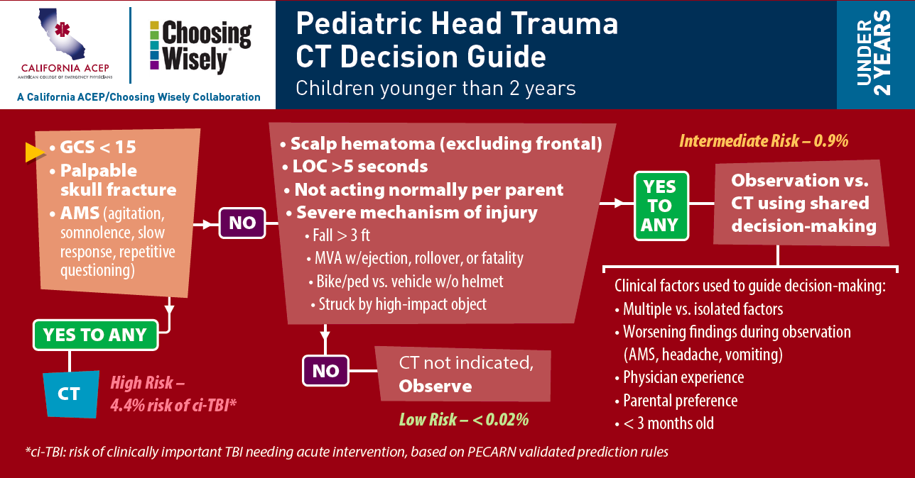 So how do you decide when to get neuroimaging? The best clinical decision instrument and the one we use at McMaster Children’s Hospital is PECARN (Pediatric Care Applied Research Network). It has been externally validated and found to be better than the CHALICE Tool and the CATCH Tool (Easter et al Annals Emergency Medicine).