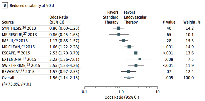 Reference: Badhiwala, JH et al. Endovascular Thrombectomy for Acute Ischemic Stroke A Meta-analysis. JAMA 2015