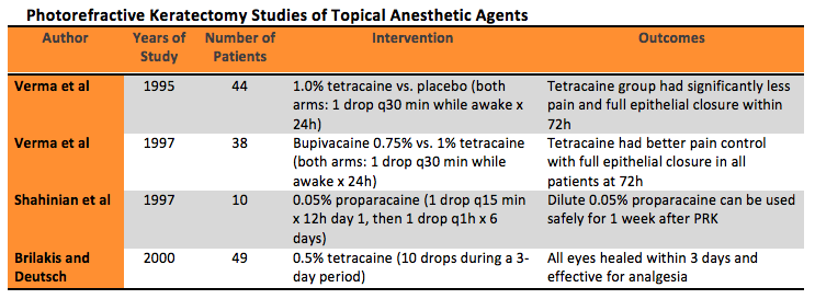 Key Results: Our systematic review found that topical anesthetics provided good pain control with no adverse outcomes if used for 48 hours and having physician follow up.