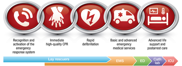 The American Heart Association came out with updated CPR & ECC Guidelines in 2015 that included its “Chain-of-Survival”. There are five steps in the Chain-of-Survival for OHCA: