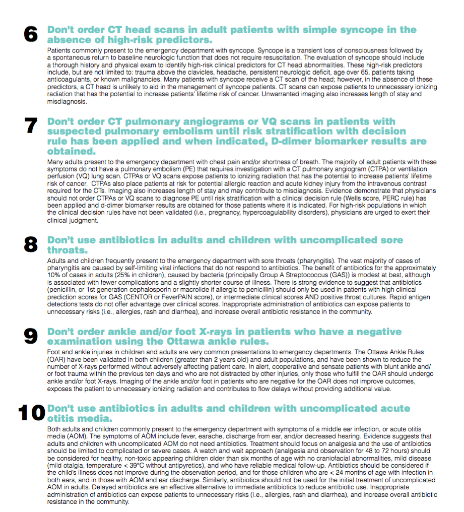 The American College of Emergency Physicians (ACEP) also came out with a list of things physicians and patients should question in October 14, 2013 (1-5) and October 27, 2014 (6-10).